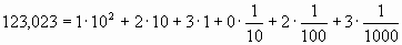 Слева мы видим свернутую запись числа, справа - развёрнутую.