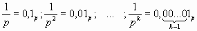 дробной части числа в p-ичной системе счисления. Если целую часть откинуть