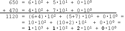 Пример 10. Напомним, как происходит сложение в десятичной системе счисления: