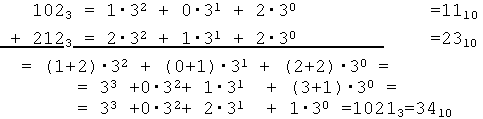 Рассмотрим пример сложения в троичной системе счисления, т.е. p=3: