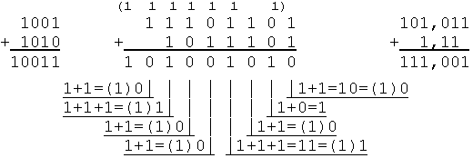 Пример 13. Рассмотрим примеры на сложение двоичных чисел