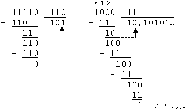 Как перевести периодическую дробь из десятичной системы счисления в р-ичную? Для периодических дробей можно пользоваться алгоритмом перевода непериодических дробей, но надо знать правила умножения периодических дробей (что очень непросто). Проще сделать так: любая периодическая дробь может быть представлена в виде обычной рациональной, тогда числитель и знаменатель надо перевести в p-ичную систему счисления и уже в ней столбиком поделить.