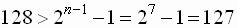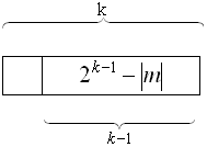 Определим диапазон чисел, представимых подобным образом. Т.к. из n двоичных разрядов под запись величины числа остаётся только (n-1) разряд, следовательно, максимальное положительное число выглядит как