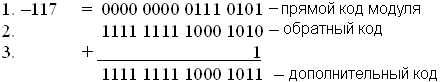 Поэтому в настоящее время для записи отрицательных чисел прямой код не используется. Для представления отрицательных чисел используют дополнительный код.
