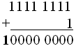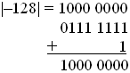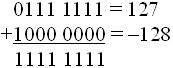 Пример 7. Вычислим (127 – 128) в 8-ми разрядной ячейке памяти. Дополнительный код положительного числа равен его прямому коду, следовательно,