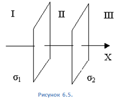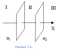заряды с поверхностными плотностями у1 и у2 (см. рисунок 0.5). Постройте