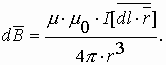 Это выражение для составляющей магнитного поля в точке p элемента проводника с током dl. Тогда полное магнитное поле проводника с током в искомой точке принимает вид: