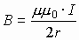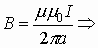 , а магнитная индукция для бесконечного прямолинейного проводника с током равна