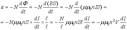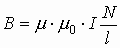 где μ - среда внутри соленоида, N - число витков соленоида, l - длина соленоида.