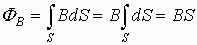 Чтобы посчитать этот поток, мы должны учесть как входящие, так и выходящие через поверхность S силовые линии B магнитного поля. Результатом является компенсация этих линий, то есть общий поток равен нулю, т.к. количество входящих и выходящих линий B через поверхность S одинаково из-за замкнутости линий. Используя приложение к теореме перейдем от поверхностного интеграла к объемному