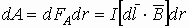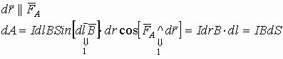 Длина проводника l, и перемещается он слева направо. Тогда работа по перемещению элемента проводника с током на расстояние dr равна: