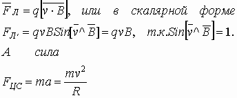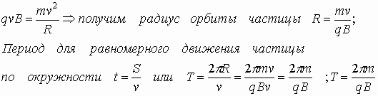 Скорость изменяется только по направлению, но не по величине. Сила Лоренца, действующая на движущуюся частицу в магнитном поле, закручивает траекторию движения в окружность, то есть появляется центростремительное ускорение: значит v изменяется только по направлению, но не по величине. Тогда приравняем