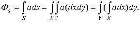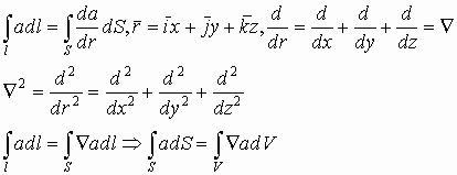 Таким образом, можно связать линейный, поверхностный и объемный интегралы, т.е. можно переходить от линейного к поверхностному, и от поверхностного к объёмному интегралу.