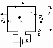 Сила Ампера указывает величину и направление силы, действующей на проводник с током I, длиной l помещенный в однородное магнитное поле. Направление
