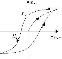 H1 - внешнее поле, необходимое для снятия собственной намагниченности, B1=0. Эта величина называется коэрцетивная сила.