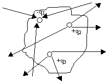В системе зарядов поток векторов напряженности по теореме Остроградского-Гаусса равен ![]()