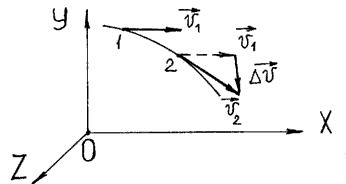 На рисунке 2 в положении 1 скорость точки v1, в положении 2 скорость точки v2. Модуль скорости v2 больше модуля скорости v1 , ∆v- вектор изменения скорости ∆v = v2 -v1