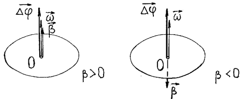 4. Для характеристики быстроты изменения угловой скорости тела при неравномерном вращении вводится вектор углового ускорения β, равный первой производной от его угловой скорости ω по времени t.