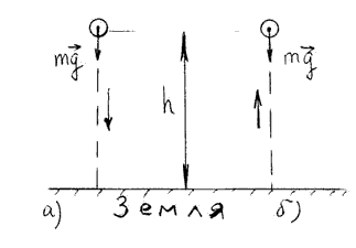 Рисунок 15. Падение тела с высоты h (a) и поднятие тела на высоту h (б)