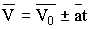 Перед величиной (at) в кинематическом уравнении для скорости знак плюс соответствует равноускоренному движению, а знак минус - равнозамедленному движению. Это замечание верно и для кинематического уравнения пути, разные знаки перед величинами (at2/2) соответствуют разным видам равнопеременного движения.