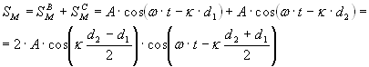 Результирующее колебание точки М: