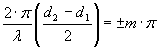 Это выполняется, если (k(d2-d1)/2)=±(2m+1)λ/2; следовательно