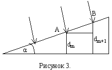 Пусть в точке А поверхности клина возникает максимум m-ого порядка. Толщина клина - dm+1. В точке В возникает максимум (m+1)-го порядка. Толщина плёнки в этом месте - dm+1. Условие наблюдения максимума при толщине dm и dm+1: