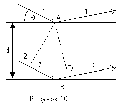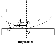 На рисунке 6 изображены интерферирующие волны, распространяются вдоль лучей 1 и 2.