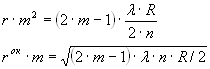 Если подставим значения d, соответствующее минимуму интерференции, получим выражение для радиуса окрашенного кольца m-ого порядка.