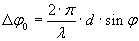 Пусть d2-d1=Δd – разность хода интерферирующих лучей, а ΔФ=2π(d2-d1)/λ=2πΔd/λ – разность фаз интерферирующих волн, тогда