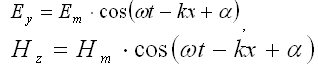 Уравнение плоской монохроматической линейно-поляризованной волны, распространяющейся в направлении оси ОХ: