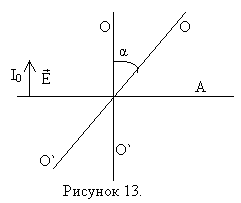 Пусть на анализатор падает линейно поляризованный свет интенсивностью I0. Оптическая ось анализатора О-О` (направление прутьев).
