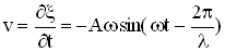 7. Скорость и ускорение колеблющейся точки. Относительное смещение точек среды.