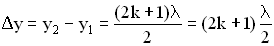 Если нечетное число полуволн укладывается на разности хода двух волн, то при их сложении наблюдается интерференционный минимум.