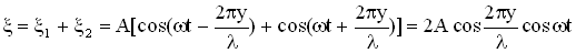 частицы среды, находящейся на расстоянии y от источника колебаний, равно сумме смещений