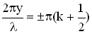 В стоячей волне есть точки, которые все время остаются неподвижными. Такие точки называются узлами смещения, их положение определяется из условия: