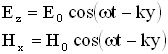 В случае плоской линейно поляризованной монохроматической волны, распространяющейся вдоль положительного направления ОY, напряженность электрического поля задается уравнением: