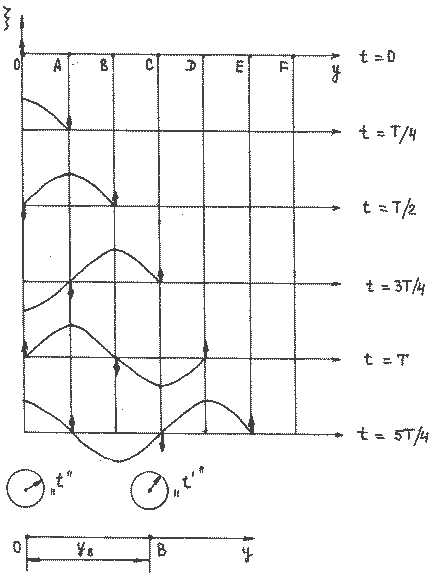 процесс колебаний дойдет до точки В, и она будет колебаться по закону: