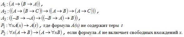 Поскольку ИП является расширением ИВ, то и множество аксиом ИП является расширением множества аксиом ИВ. Логическими аксиомами для ИП являются аксиомы ИВ и аксиомы ИП: