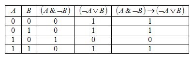 Построим таблицу истинности для формулы .