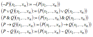 Предикаты P, Q мощности n , определенные на предметной области называются
