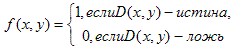Функция f (x, y) определяет истинностное значение предиката при определенных значениях предметных переменных x и y . Значение функции g (x, y) принадлежит той де предметной области, что и предметные переменные x и y. Для записи функций типа функции f (x, y) используются формулы, а для записи функций типа функции g (x, y) – термы.