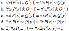 Теорема. Справедливы следующие логические эквивалентности для алгебры высказываний (1 и 0 – тождественно истинное и тождественно ложное высказывания соответственно):