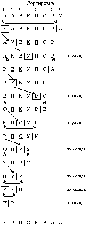 Пример. Отсортировать слово методом пирамидальной сортировки.