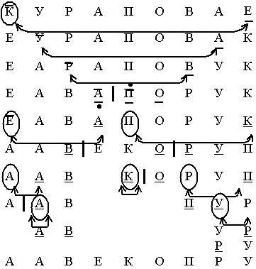 Элемент am называется медианой для элементов aL…aR, если количество элементов меньших am равно количеству элементов больших am с точностью до одного элемента (если количество элементов нечётно). В примере буква К- медиана для КУРАПОВАЕ.