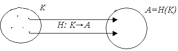 Все рассмотренные ранее алгоритмы были связаны с задачей поиска, которую можно сформулировать следующим образом: задано множество ключей, необходимо так организовать это множество ключей, чтобы поиск элемента с заданным ключом потребовал как можно меньше затрат времени. Поскольку доступ к элементу осуществляется через его адрес в памяти, то задача сводится к определению подходящего отображения H множества ключей K во множество адресов элементов A.