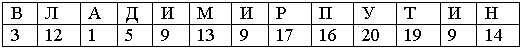 Пример построения хеш-таблицы методом квадратичных проб (m=11) для строки ВЛАДИМИР ПУТИН. Номера символов данной строки приведены в таблице.