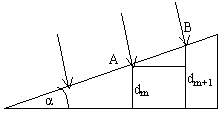 Пусть в точке А поверхности клина возникает максимум m-ого порядка. Толщина клина - dm+1. В точке В возникает максимум (m+1)-го порядка. Толщина плёнки в этом месте - dm+1. Условие наблюдения максимума при толщине dm и dm+1:
