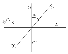 Пусть на анализатор падает линейно поляризованный свет интенсивностью I0. Оптическая ось анализатора О-О` (направление прутьев).
