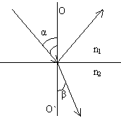 Часть световой волны отражается, а часть преломляется, распространяясь во второй среде. На рисунке: φ – угол падения луча, β – угол преломления, n2 – показатель преломления стекла, n1 - показатель преломления воздуха, n1=1.